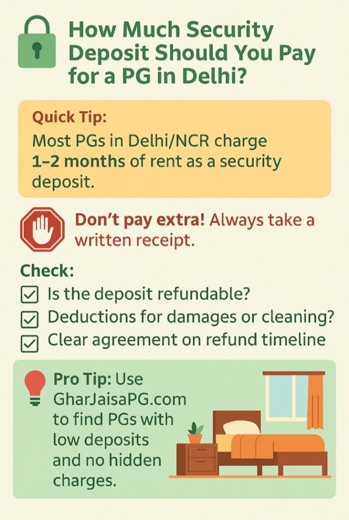 ๐ก Quick Tip: Most PGs in Delhi/NCR charge 1-2 months of rent as a security deposit.